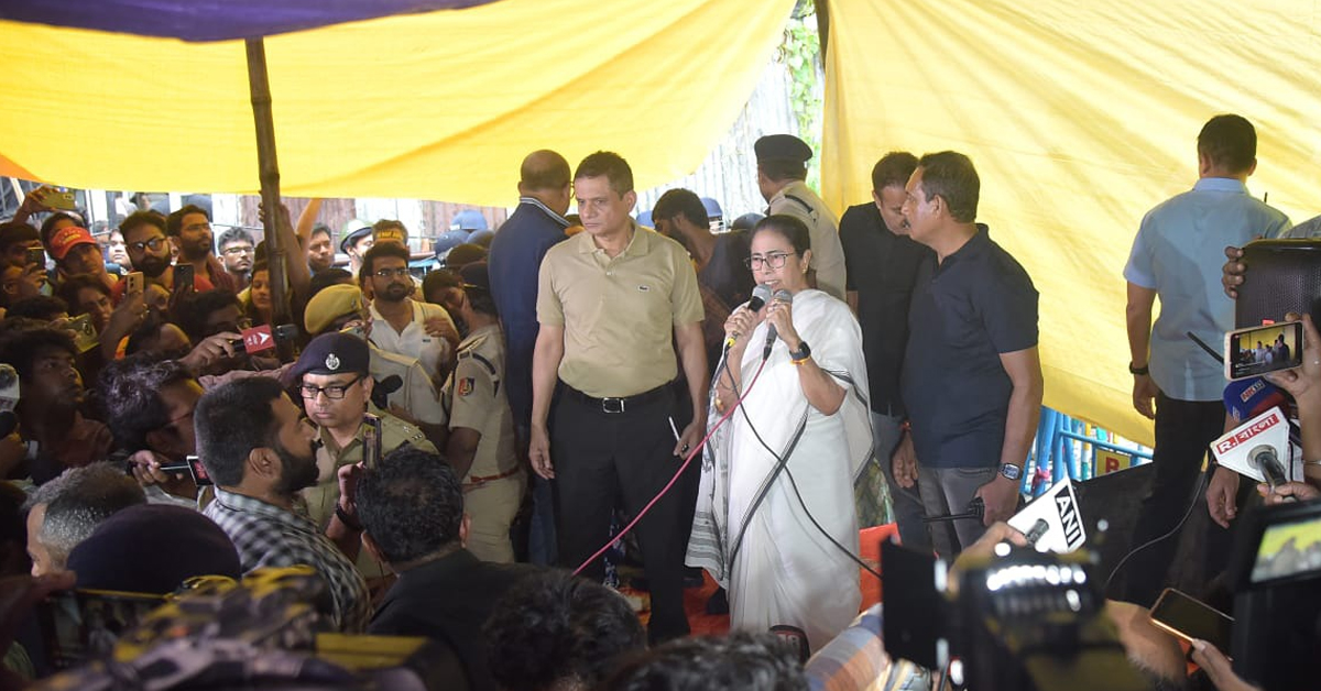 প্রতিবেদন : শনিবার দুপুরে অভিভাবকোচিত আন্তরিকতায় জুনিয়র ডাক্তারদের ধরনায় পৌঁছে গেলেন মুখ্যমন্ত্রী মমতা বন্দ্যোপাধ্যায় (CM Mamata Banerjee)। বেনজির এই পদক্ষেপে রাজ্য জুড়ে চাঞ্চল্য ছড়ায়। বৃষ্টি মাথায় করেই মুখ্যমন্ত্রী আন্দোলনকারীদের আবেদন জানিয়ে বলেন, আমার উপর আস্থা রাখুন, কাজে ফিরুন। আপনাদের সব দাবি বিবেচনা করব। আমাকে একটু সময় দিন। সামনেই সুপ্রিম কোর্টের শুনানি। কথা দিচ্ছি আপনাদের বিরুদ্ধে কোনও ব্যবস্থা নেওয়া হবে না। মুখ্যমন্ত্রী (CM Mamata Banerjee) নয়, দিদি হিসাবে এটাই আমার শেষ চেষ্টা।