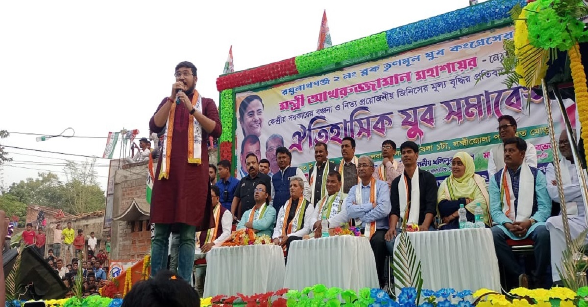 সংবাদদাতা, জঙ্গিপুর : রঘুনাথগঞ্জ ২ ব্লক তৃণমূল যুব কংগ্রেসের ডাকে মঙ্গলবার লক্ষ্মীজোলা মাঠে হল এক ঐতিহাসিক যুব সমাবেশ। কেন্দ্রীয় সরকারের বঞ্চনা ও নিত্য প্রয়োজনীয় জিনিসের মূল্যবৃদ্ধির প্রবল প্রতিবাদে সভা মুখর হয়ে উঠল নেতাদের উদ্দীপ্ত বক্তব্যে। এলাকার মানুষ দলে দলে শামিল হলেন প্রতিবাদ সভায়।