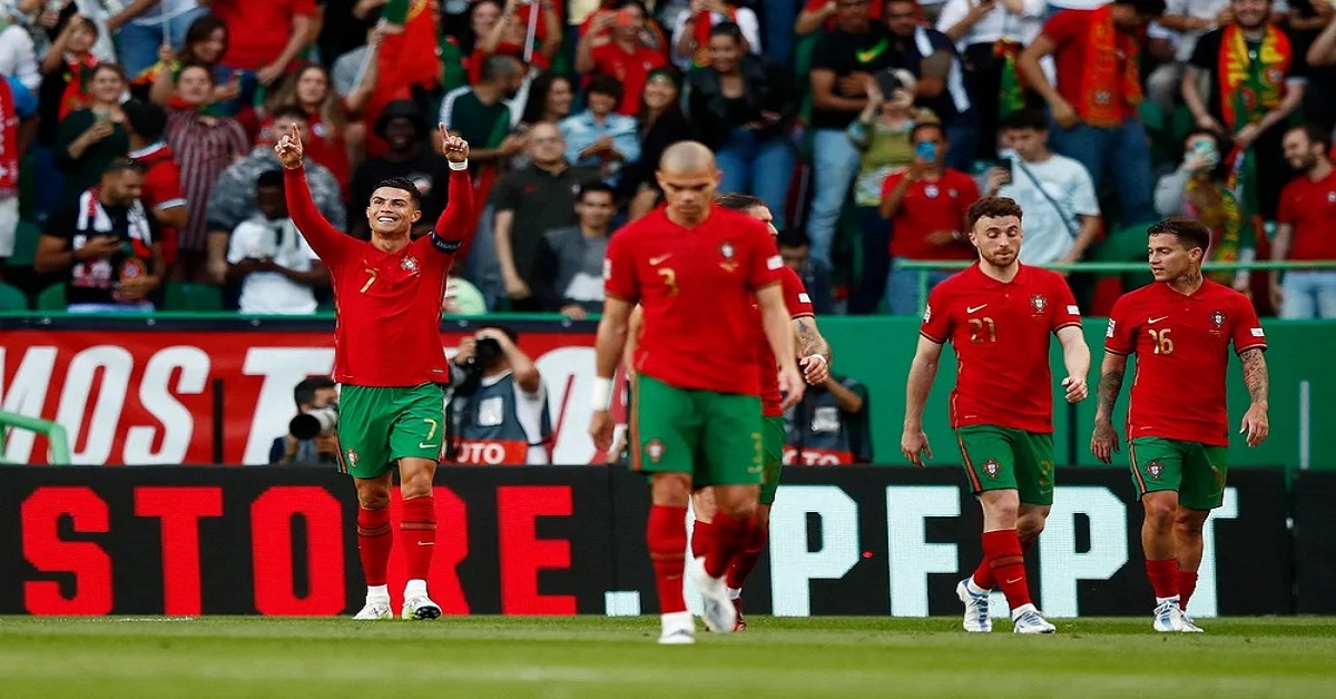 ম্যাচের ১৫ মিনিটেই রোনাল্ডোর দুর্দান্ত ফ্রি-কিক সুইজারল্যান্ডের গোলরক্ষক আংশিক সেভ করলেও, ফিরতি বল জালে ঠেলে দেন উইলিয়াম কার্ভালহো। ৩৪ মিনিটে গোলের দেখা পেয়ে যান রোনাল্ডো নিজেও। পাঁচ মিনিটের মধ্যে ফের গোল করে দলকে বিরতির আগেই ৩-০ ব্যবধানে এগিয়ে দিয়েছিলেন সিআর সেভেন। ৪৩ মিনিটে জোয়াও ক্যানসেলোর নিখুঁত ক্রস জালে রাখতে পারলে হ্যাটট্রিকও করে ফেলতে পারতেন রোনাল্ডো।