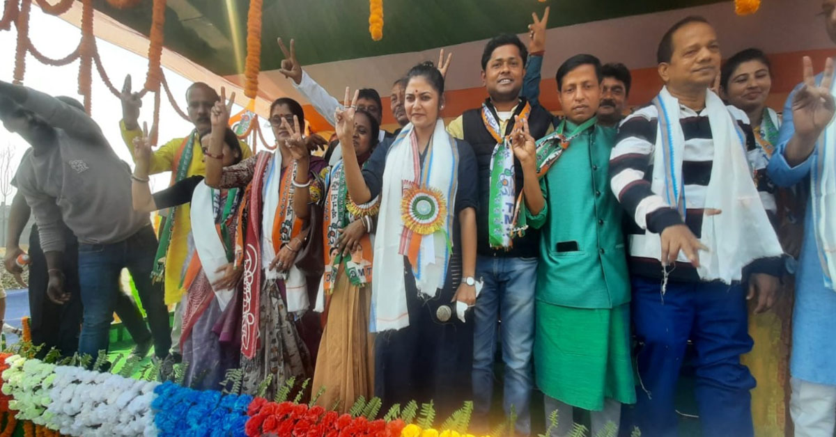 কমল মজুমদার, জঙ্গিপুর : “কংগ্রেস, সিপিএম, বিজেপি মানুষকে ভোটার হিসেবে দেখে। কিন্তু তৃণমূল কংগ্রেস বলে আগে মানুষ পরে ভোটার। তাই রাজ্যের মা, মাটি, মানুষ তৃণমূলের সঙ্গে আছে। আর ভোকাট্টা হয়ে গিয়েছে বিজেপি, সিপিএম, কংগ্রেস।” জঙ্গিপুর পুরসভা নির্বাচনী প্রচারে এসে মঞ্চে দাঁড়িয়ে এমনটাই বললেন তৃণমূলের যুবনেত্রী সায়নী ঘোষ (Saayoni Ghosh)। এরপরই আত্মবিশ্বাসের সঙ্গে সায়নীর বার্তা— ‘২৭ তারিখ জঙ্গিপুরে খেলা হবে’। রোদ উপেক্ষা করেই মঞ্চের সামনে অগণিত মানুষ। খেলা হবের তালে করতালি দিয়ে সমর্থন জানালেন তাঁরা। মেলালেন গলা। সভায় উপস্থিত ছিলেন প্রাক্তন মন্ত্রী তথা জঙ্গিপুরের বিধায়ক জাকির হোসেন (Jakir Hossain), জঙ্গিপুর জেলা তৃণমূল যুব সভাপতি পারভেজ হাবিব, রঘুনাথগঞ্জ ১ ব্লকের তৃণমূল কংগ্রেসের সভাপতি গৌতম ঘোষ প্রমুখ। তৃণমূল কংগ্রেসের উন্নয়নের খতিয়ান তুলে ধরে সায়নী বলেন, ‘আমাদের মুখ্যমন্ত্রী একেবারে সাদামাঠা জীবনযাপন করেন। কিন্তু তাঁর উন্নয়নকর্ম অসাধারণ। ২৪ ঘণ্টা, ৩৬৫ দিন মানুষের কথা ভাবেন আমাদের নেত্রী। আর বিরোধীরা উন্নয়ন নয়, ব্যস্ত কুৎসা করতে। এর জবাব গত বিধানসভা নির্বাচনে বাংলার মানুষ দিয়েছেন। পুরসভা নির্বাচনেও জবাব দেবেন মানুষ।” সায়নী (Saayoni Ghosh) দ্বিতীয় সভাটি করেন জঙ্গিপুর পুরসভার ৩ নম্বর ওয়ার্ডে ১৩ জন প্রার্থীর সমর্থনে। দুটি সভাতেই উপচে পড়েছিল ভিড়। সভা শেষে জঙ্গিপুরের বিধায়ক জাকির হোসেনের জনতার দরবারে যান সায়নী। সেখানেই তৃণমূল কংগ্রেসের যুবনেত্রীকে পুষ্পস্তবক দিয়ে সংবর্ধনা দেন। উপহার হিসেবে দেন মুর্শিদাবাদ সিল্কের শাড়ি।