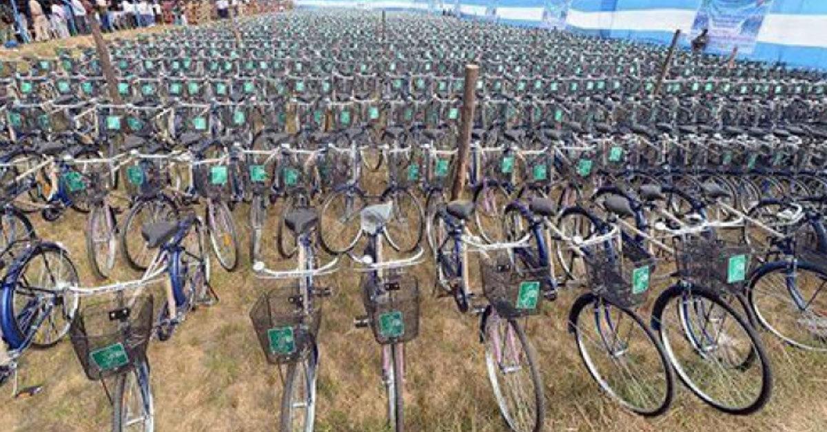প্রতিবেদন : সবুজসাথী প্রকল্পের (Sabooj Sathi Scheme) সাইকেল এরাজ্যে তৈরি করার জন্য সরকার উদ্যোগী হল। সাইকেল নির্মাণে কারখানা গড়তে এবার আগ্রহী সংস্থার কাছ থেকে দরপত্র আহ্বানের প্রক্রিয়া শুরু হচ্ছে। বুধবার নবান্নে (Nabanna) মুখ্যমন্ত্রী মমতা বন্দ্যোপাধ্যায়ের (CM Mamata Banerjee) পৌরোহিত্যে রাজ্য মন্ত্রিসভার বৈঠকে এই প্রস্তাব অনুমোদিত হয়েছে। বৈঠক নিয়ে সরকারিভাবে কিছু না জানানো হলেও সূত্রের খবর, এব্যপারে ইতিমধ্যেই বেশ কিছু সংস্থা আগ্রহ দেখিয়েছে। রাজ্যে (West Bengal) সাইকেল (Sabooj Sathi Scheme) কারখানা তৈরির জন্য সরকারের কাছে প্রস্তাবও জমা দিয়েছে তারা। জমা পড়া সেই সব প্রস্তাব মুখ্যমন্ত্রী বিবেচনার জন্য নির্দেশ দিয়েছেন। প্রতি বছর সবুজসাথী প্রকল্পে ছাত্রছাত্রীদের সাইকেল দিতে প্রায় ১০ লক্ষ সাইকেল কিনতে হয়। যার জন্য ৩৪০ কোটি টাকা খরচ হয়। রাজ্যে সাইকেল কারখানা তৈরি হলে একদিকে আমদানি খরচ কম হবে, তেমনই বিপুল কর্মসংস্থানের সুযোগ হবে। সেকারণেই এই উদ্যোগ।