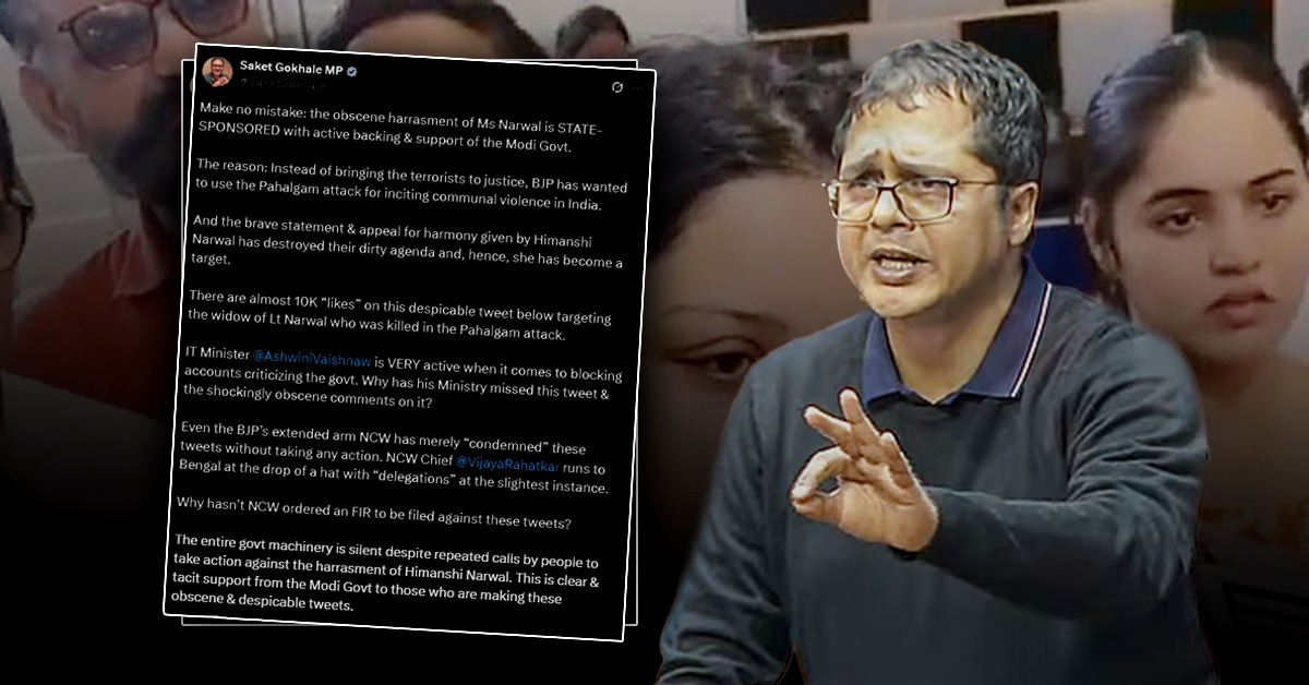 হিমাংশীকে সমর্থন করে সাকেত লেখেন, ”শ্রীমতী নারওয়ালের বিরুদ্ধে যে অশ্লীল, কদর্য ভাষা প্রয়োগ করা হচ্ছে তা পুরোপুরি সরকারি মদতে। মোদী সরকারের সক্রিয় সমর্থন ও মদতে এটা চলছে। জঙ্গিদের শাস্তি না দিয়ে বিজেপি সাম্প্রদায়িক হিংসা ছড়াতে চায় ভারতে। হিমাংশী নরওয়াল সেদিনের অনুষ্ঠানে যেভাবে সাহসের সঙ্গে সম্প্রীতি রক্ষার বার্তা দিয়েছেন তার ফলে ওদের নোংরা মতলব বানচাল হয়ে গিয়েছে। তাই তিনি বিজেপির নিশানায় পরিণত হয়েছেন। লেফটেন্যান্ট নরওয়ালের স্ত্রীর চরিত্র তুলে কথা হচ্ছে এরকম পোস্টে ১০হাজার লাইক পড়ছে। সরকারের সমালোচনা করলে সেই অ্যাকাউন্ট ব্লক করতে কেন্দ্রীয় তথ্য-সম্প্রচারমন্ত্রী অশ্বিনী বৈষ্ণো তৎপর। এখন কী করে তাঁর মন্ত্রক এরকম নোংরা ভাষায় মন্তব্য চোখে দেখতে পাচ্ছে না।”