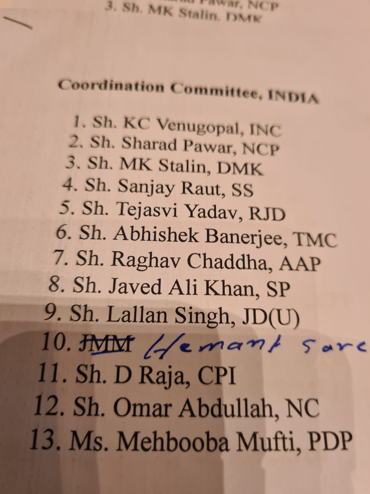 আজকের বৈঠকে ডিএমকে প্রধান এম কে স্ট্যালিন তাঁর বক্তব্যে সাধারণ ন্যূনতম কর্মসূচি তৈরি এবং সমন্বয় কমিটি গঠনের উপর জোর দেন। তিনি বলেন, কীভাবে বিজেপি দেশকে ধ্বংস করেছে এবং কীভাবে I.N.D.I.A. জোট (INDIA Alliance) বিজেপি সরকারের ভুল সংশোধন করতে চায় তা দেশবাসীর সামনে তুলে ধরবেন সমন্বয় কমিটির সদস্যরা।