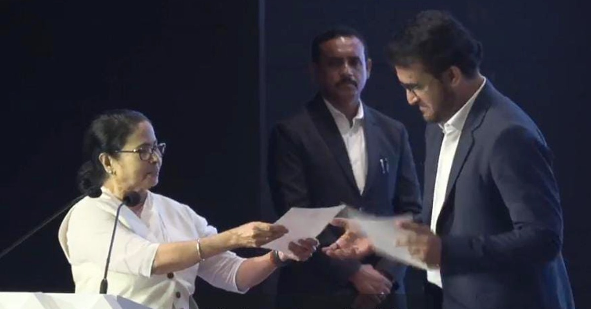 এদিন বাংলার শিল্প সম্ভাবনা ও পরিস্থিতির কথা জানানোর পরে বাংলার মুখ্যমন্ত্রী বলেন, ‘‘আমি এখন একটা ঘোষণা করতে চাই।’’ সবাই অতি আগ্রহে তাকান। এরপরেই সৌরভ গঙ্গোপাধ্যায়ের নাম বাংলার ব্যান্ড অ্যাম্বাসাডর হিসাবে ঘোষণা করেন মুখ্যমন্ত্রী। মহারাজকে ডেকে নেন মমতা বন্দ্যোপাধ্যায়। বলেন, ‘‘আমি না শুনতে চাই না। সব কিছুকে পজিটিভ দৃষ্টিভঙ্গী থেকে দেখতে হবে।’’ মঞ্চেই সৌরভের হাতে নিয়োগপত্র তুলে দেন মুখ্যমন্ত্রী। হাততালিতে ফেটে পড়ে বিশ্ববাংলা কনভেনশন সেন্টার।