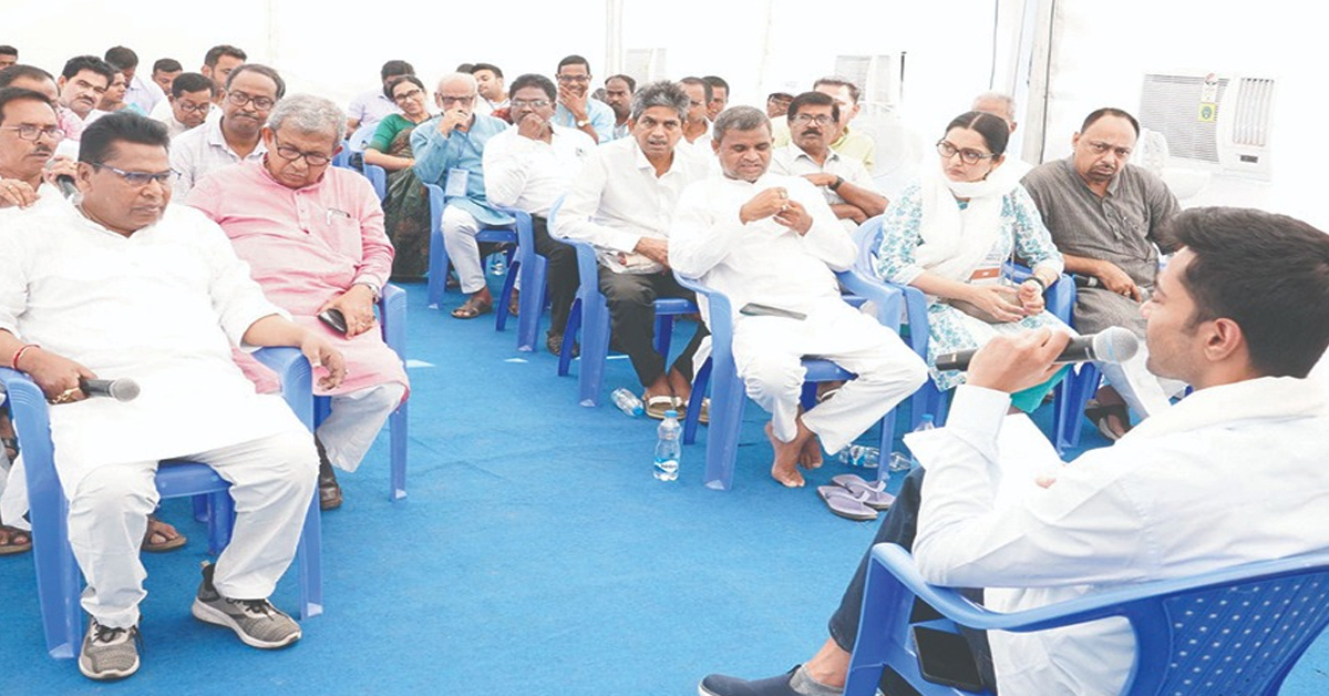 প্রতিবেদন : রবিবার শালবনির ক্যাম্পে পশ্চিম মেদিনীপুর জেলার নেতাদের নিয়ে একান্তে বৈঠক করেন অভিষেক বন্দ্যোপাধ্যায়। দুপুর ২টো থেকে শুরু হওয়া এই বৈঠকে প্রতিটি অঞ্চল ধরে-ধরে কী করতে হবে তার পরামর্শ দেন তিনি (Abhishek Banerjee)। এ-ছাড়া কয়েকটি বিষয় নির্দিষ্টভাবে উল্লেখ করে ভবিষ্যতে তা শুধরে চলার নির্দেশ দিয়েছেন দলের সর্বভারতীয় সাধারণ সম্পাদক। তাঁর কথায়, এই জেলায় দলের প্রচার থেকে নিজস্ব প্রচার বেশি হচ্ছে। ইগোর লড়াই চলছে। আমি ওঁকে জানাব, তাঁকে জানাব না, এমন ঘটনা ঘটছে। গোষ্ঠীদ্বন্দ্ব না থাকলেও ইগো আছে। সেই ইগো ঝেড়ে ফেলুন। সবাই আমরা দলের কর্মী, এটা মাথায় রেখে কাজ করুন। সেই সঙ্গে অজিত মাইতি, দীনেন রায়, মানস ভুঁইয়া, জেলা সভাপতি সুজয়কে বাড়তি দায়িত্ব নেওয়ার কথা বলেন। নারায়ণগড়, খড়্গপুর, মোহনপুর, দাঁতন, শালবনি, মোহনপুর ব্লকে সংগঠনে বাড়তি নজর দেওয়ার নির্দেশ দেন অভিষেক। চন্দ্রকোনা রোড এলাকায় সমন্বয়ের অভাব রয়েছে বলে বৈঠকে উল্লেখ করেন। রবিবার শালবনিতে রোড-শো করেন তিনি (Abhishek Banerjee)। সেখানে নদীর ধারে ৫০টি পরিবারকে উচ্ছেদের নোটিশ দেওয়া হয়েছে শুনে তাঁদের সঙ্গেও দেখা করেন তিনি। এদিন শালবনির তমাল ব্রিজের কাছে গ্রামবাসীরা জমির যথার্থ অর্থমূল্য পাওয়া নিয়ে ক্ষোভ জানালে অভিষেক আশ্বাস দেন যথাযথ ব্যবস্থা নেওয়ার। কেশপুরে বীর বিপ্লবী ক্ষুদিরাম বসুর মূর্তিতে মালা দিয়ে তাঁকে শ্রদ্ধা জানান তিনি। এদিনও অভিষেক বন্দ্যোপাধ্যায়কে কেন্দ্র করে ছিল জনতার ঢল।