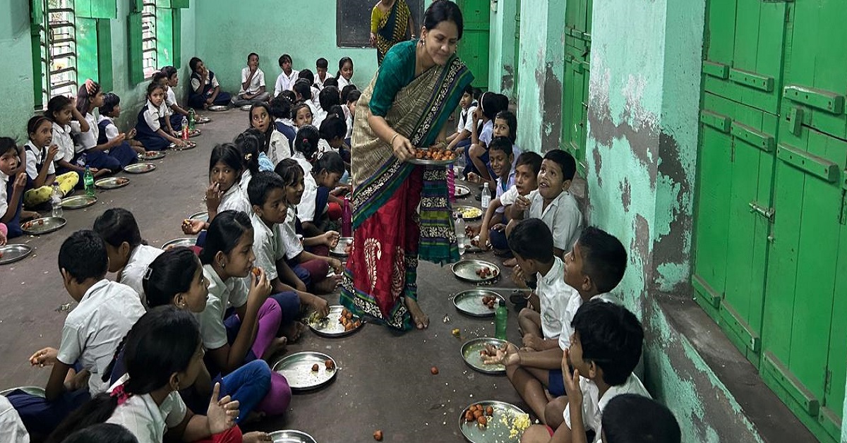 তুহিনশুভ্র আগুয়ান, হলদিয়া: বাইরে ঝমঝমিয়ে বৃষ্টির সঙ্গে মিড-ডে মিলের পাতে তালের বড়া পেয়ে আনন্দে আত্মহারা হয়ে পড়ল খুদে পড়ুয়ারা। শনিবার পূর্ব মেদিনীপুরের ডিঘাসীপুর বোর্ড প্রাথমিক বিদ্যালয়ের মিড-ডে মিলের মেনুতে ভাত, ডাল, তরকারির পাশাপাশি ছিল অন্যতম আকর্ষণ হিসেবে তালের বড়া। মহা-আনন্দে তালের বড়া খেতে খেতে বর্ষা উপভোগ করল পড়ুয়ারা। এর আগে একাধিকবার এই স্কুলের মিড-ডে মিলে স্বাদবদল ঘটাতে দুধ-কলা, মাংস, আম-কাঁঠালের পাশাপাশি মাংসেরও আয়োজন করেন শিক্ষক-শিক্ষিকারা।