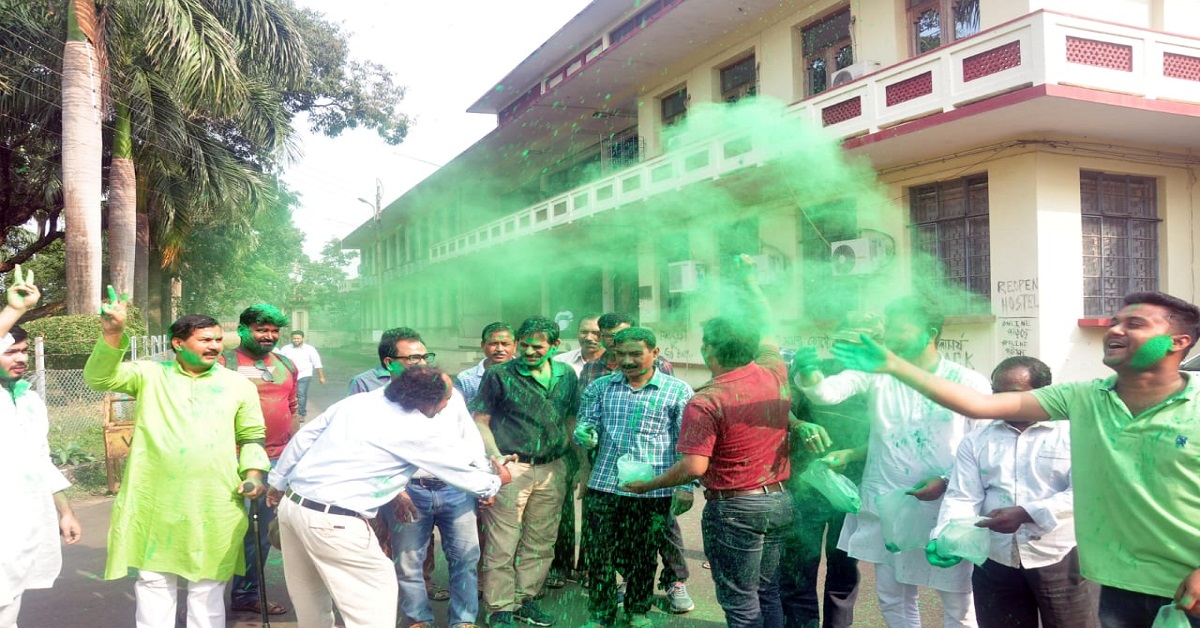 বুধবার আশ্রমিক সংঘ ও শান্তিনিকেতনবাসীরা প্রাক্তন উপাচার্য বিদ্যুৎ চক্রবর্তী বিদায়ের নোটিফিকেশনের অপেক্ষায় থেকে একটু দেরি করেই মুক্তির আনন্দে বৈতালিক বের করেন আশ্রমের বাইরে। বৃহস্পতিবার বিশ্বভারতীর প্রাক্তনীরা বিশেষ বৈতালিক বের করেন এবং আলোয় সজ্জিত করেন গৌরপ্রাঙ্গণ, ছাতিমতলা, ঘণ্টাতলা সিংহসদনে। উপস্থিত ছিলেন প্রবীণ আশ্রমিক তথা আশ্রমিক সংঘের সচিব সুবীর বন্দ্যোপাধ্যায়। বিদ্যুৎবাবুর আমলে পৌষমেলায় আশ্রমিক সংঘকে অপমান করার পর তাঁদের কোনও সদস্য আশ্রমে আসেননি। সন্ধ্যায় বিশেষ বৈতালিকে অংশ নেন তাঁরা। আশ্রমের আকাশ মুখরিত হয় বিশেষ সমবেত বৈতালিক সঙ্গীতে ‘আমার মুক্তি আলোয় আলোয়’ ও ‘আমার এ দেহখানি তুলে ধরো তোমার ঐ দেবালয়ে প্রদীপ করো।’