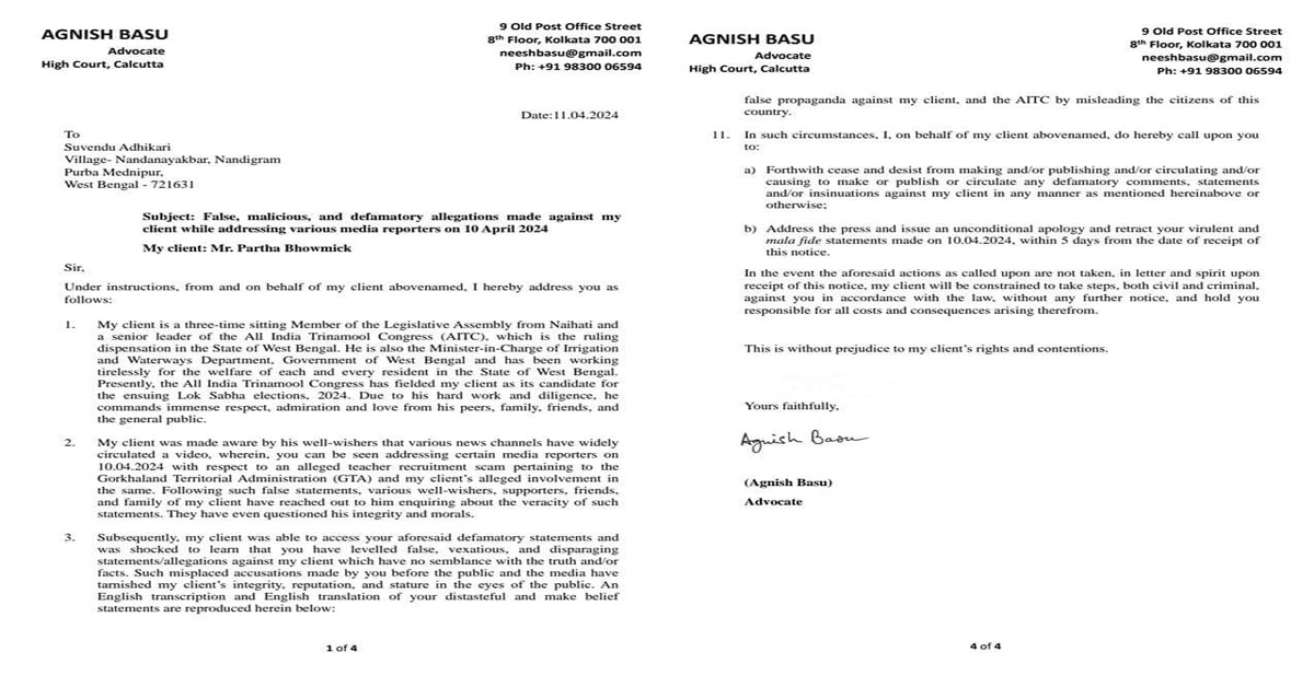 প্রতিবেদন : কুরুচিকর মন্তব্যের জের। বিজেপি নেতা শুভেন্দু অধিকারীকে আইনি নোটিশ পাঠালেন বারাসতের তৃণমূল সাংসদ কাকলি ঘোষদস্তিদার। রেশন দুর্নীতি মামলায়…
