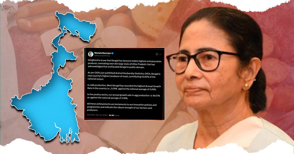 ডিম-দুধ-মাংস উৎপাদনে এবার উত্তরপ্রদেশকে টেক্কা দিল বাংলা। প্রাণীজ প্রোটিন (Animal Protein) উৎপাদনে এগিয়ে পশ্চিমবঙ্গ, এমনটাই এক্স হ্যান্ডেলে জানিয়েছেন মুখ্যমন্ত্রী মমতা…