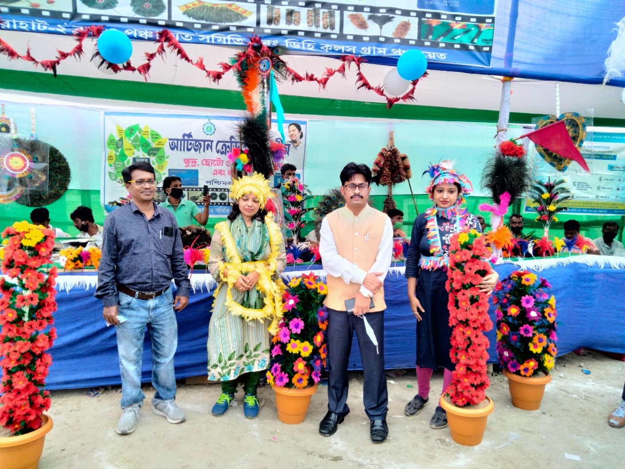ক্ষুদ্র, ছোট ও মাঝারি শিল্পের উদ্যোগ ও বস্ত্র দফতরের নয়া প্রকল্প আর্টিজান ক্রেডিট কার্ড। এই কার্ডের মাধ্যমে উপভোক্তা কমপক্ষে ২৫ হাজার থেকে ২ লক্ষ টাকা পর্যন্ত মূলধন অথবা মেয়াদি ঋণ গ্রহণ করতে পারবেন। রবিবার ডিহি কলস পঞ্চায়েতের উদোগের দুয়ারে সরকার ক্যাম্পে নানা ধরনের পণ্য-সামগ্রী নিয়ে অংশ নিয়েছিল পালক হস্তশিল্পের সঙ্গে যুক্ত কারিগররা। উল্লেখ্য, মগরাহাটের (Magrahat) পালকজাত পণ্য রাজ্য-দেশের পাশাপাশি পাড়ি দেয় বিদেশেও। রাজ্যের ঐতিহ্যবাহী এই শিল্প বহু কাজে ব্যবহার হয়ে থাকে। ঘর, অনুষ্ঠান মঞ্চ সাজানো থেকে শুরু পুজোর আরতিতেও কাজে লাগে। দেশের সেনাবাহিনীরাও প্যারেডের সময় হ্যাকেলে ব্যবহার করে থাকে। বরের পাগড়ি-তাজ বা হিন্দিতে যাকে কলগি বলে থাকে সেখানেও ব্যবহার হয়ে থাকে পালকের নিপুন কাজ।