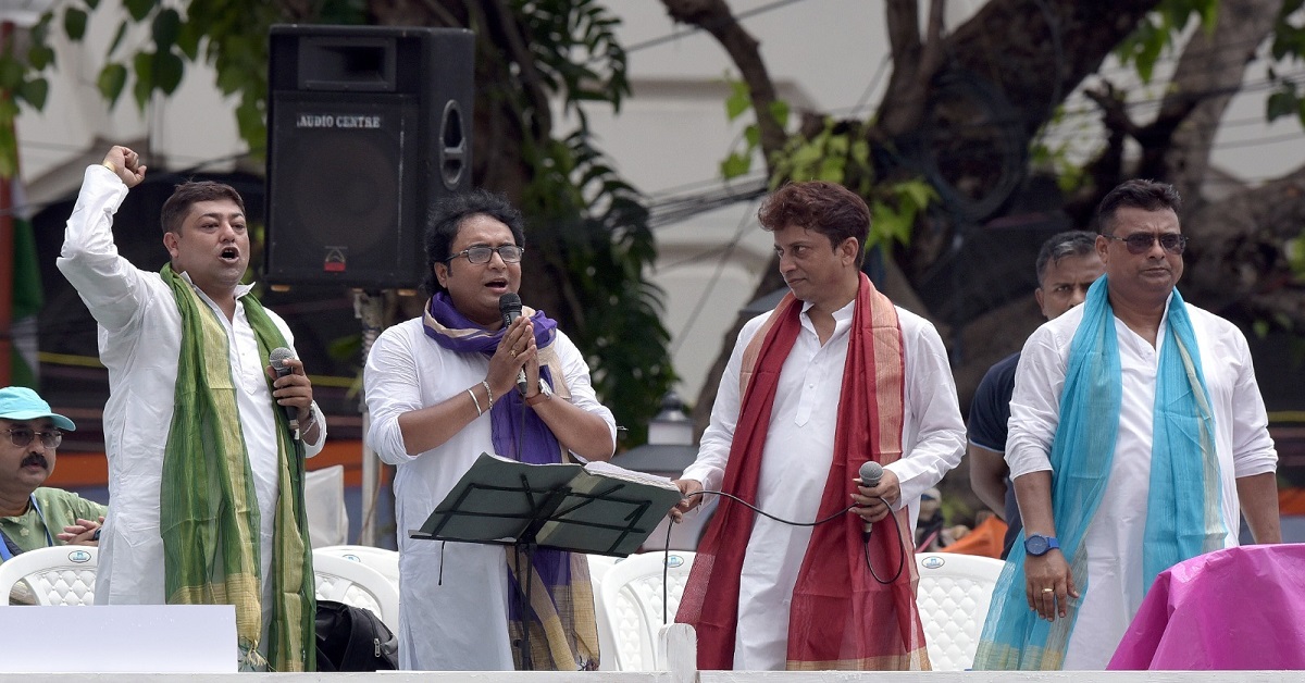 এদিন দলনেত্রীর বক্তব্য পেশ করার আগে গান শোনান নচিকেতা চক্রবর্তী। তাঁর গানে আসে সমাজচেতনার কথা। তাই গানে গানেই তিনি এদিন রীতিমতো একহাত নিলেন প্রধানমন্ত্রীকে। মণিপুর হিংসার কথাও উঠে এল তাঁর গানের ছত্রে। বাদ গেল না কৃষকদের দুরবস্থার কথাও। এছাড়াও ‘তুমি আসবে বলেই’ গানটি বাড়তি স্বাদ এনে দিল আজকের সভায়। তবে শুধু নচিকেতা নন, সুরজিৎ ও শান্তনু রায়চৌধুরীও মাতিয়ে দিলেন গান গেয়ে। এছাড়াও অভিনয় জগতের একাধিক তারাকে দেখা গেল। মঞ্চে দেখা মিলল সৌমিতৃষা কুণ্ডু, থেকে শুরু করে সুদেষ্ণা রায়, শ্রীতমা ভট্টাচার্য, সুদীপ্তা বন্দ্যোপাধ্যায়, ভাস্বর চট্টোপাধ্যায়ের। পরিবর্তন গোষ্ঠী শহিদদের উদ্দেশে গানে শ্রদ্ধা নিবেদন করে। শোনায়, প্রতুল মুখোপাধ্যায়ের বিখ্যাত গান ‘আমি বাংলার গান গাই’। এদিন গানে গানে জমিয়ে দেন তৃণমূল ছাত্র যুবদের বাংলা গানের ব্যান্ড ‘জয়ী’ও|