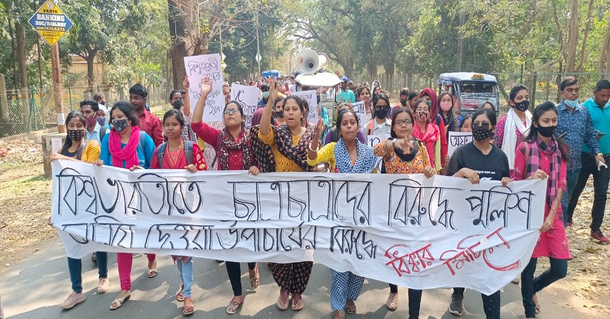 দেবর্ষি মজুমদার, শান্তিনিকেতন : সোমবার সকালে ক্লাস করতে গিয়ে পড়ুয়ারা দেখলেন সব ভবনের ফটকে তালা বন্ধ। শিক্ষকরাও ফিরে আসতে বাধ্য হন। তারপরই বিশ্ববিদ্যালয় কর্তৃপক্ষের চক্রান্তের গন্ধ পেয়ে আশ্রমের ক্যাম্পাসে প্রতিবাদ মিছিল বের করেন পড়ুয়ারা।