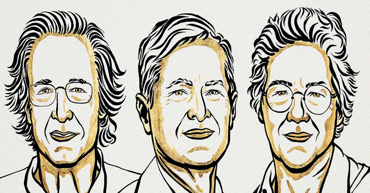 বাঁদিকে পিয়ের অ্যাগস্টিনি, মাঝখানে ফেরেঙ্ক ক্রাউৎজ, ডানদিকে অ্যানি এল’হুইলিয়ার