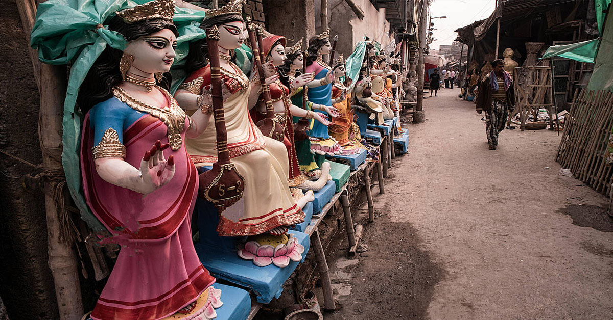 নদীর রূপে সরস্বতী মূর্তি অষ্টভুজা।