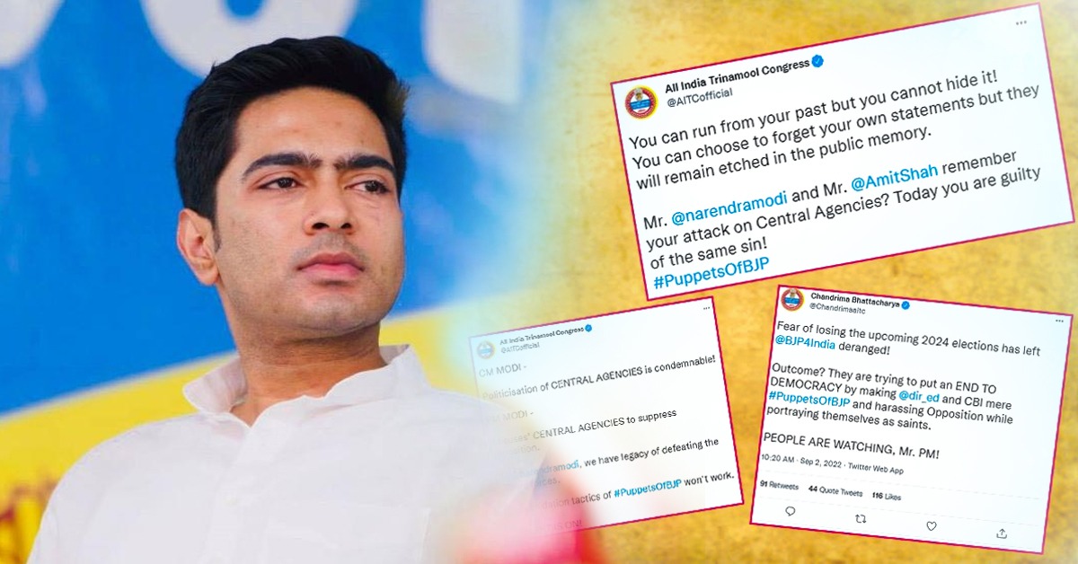 তৃণমূল ছাত্র পরিষদের প্রতিষ্ঠা দিবসের সমাবেশের পরের দিনই তৃণমূল কংগ্রেসের সর্বভারতীয় সাধারণ সম্পাদককে তলব করে ইডি। শুক্রবার নির্ধারিত সময়ের অনেক আগেই সিজিও কমপ্লেক্সে হাজিরা দেন অভিষেক বন্দ্যোপাধ্যায়। এরপর বেলা সাড়ে ১১টা থেকে শুরু হয় জিজ্ঞাসাবাদ। আজ সকাল থেকেই কেন্দ্রীয় এজেন্সিকে ‘বিজেপির পুতুল’ বলে কটাক্ষ করে তৃণমূল কংগ্রেস। সোশ্যাল মিডিয়ায় #PuppetsofBJP লিখে প্রচার শুরু করা হয় । দলীয় টুইটার হ্যান্ডেল থেকে একাধিক তৃণমূল নেতা-নেত্রীরা জানান, ইডি-সিবিআইয়ের মতো কেন্দ্রীয় এজেন্সিগুলিকে রাজনৈতিক প্রতিহিংসা চরিতার্থ করতে ব্যবহার করা হচ্ছে।