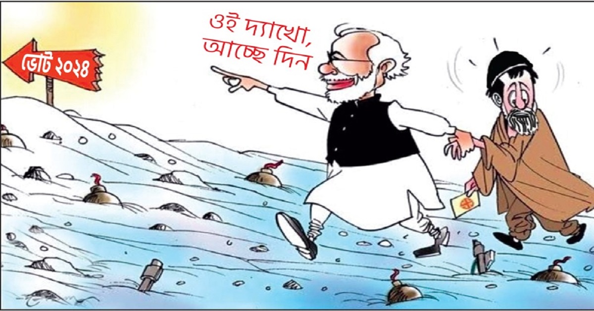 বেকার যুবতীরা কি চাকরি পাবে? জিনিসের দাম কি কমবে? কেন্দ্রীয় সরকারের ৯ লক্ষ শূন্য পদে কি নিয়োগ হবে, কিংবা যাঁরা এখন চাকরিরত তাঁরা কর্মজীবনের শেষদিন পর্যন্ত কাজ করতে পারবেন তো? আর প্রধানমন্ত্রীকে বলতে শুনছি, চাকরি চাওয়ার চেয়ে চাকরি দেওয়ার লোক নাকি বেড়ে যাচ্ছে তাঁর হাতে তৈরি নতুন ভারতে। মিথ্যাচার আর কাকে বলে?