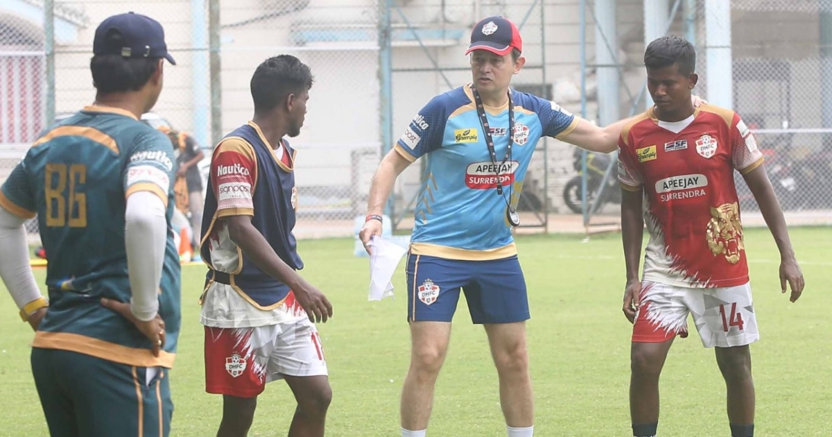 প্রতিবেদন : শুক্রবার বিধাননগর পুরসভার মাঠে ডায়মন্ড হারবার দলের ফুটবলারদের (Diamond Harbour Football Club) অনুশীলন করালেন কোচ কিবু ভিকুনা (Kibu Vicuna)। প্রথম দিন প্রায় পৌনে দু’ঘণ্টার প্র্যাকটিসে গেম সিচ্যুয়েশনে জোর দিলেন স্প্যানিশ কোচ। আক্রমণ সামলানোর মহড়ায় যেমন ছিলেন ডিফেন্ডাররা, মাঝমাঠ ও আক্রমণভাগের ফুটবলাররা ডিফেন্স ভেঙে গোল করার প্রস্তুতিও সারলেন। কর্নার, শুটিং, ফ্রিকিক অনুশীলনেও ছিল বৈচিত্র। ফুটবলারদের সঙ্গে বন্ধুর মতো মিশছেন মোহনবাগানকে আই লিগ দেওয়া স্প্যানিশ কোচ।