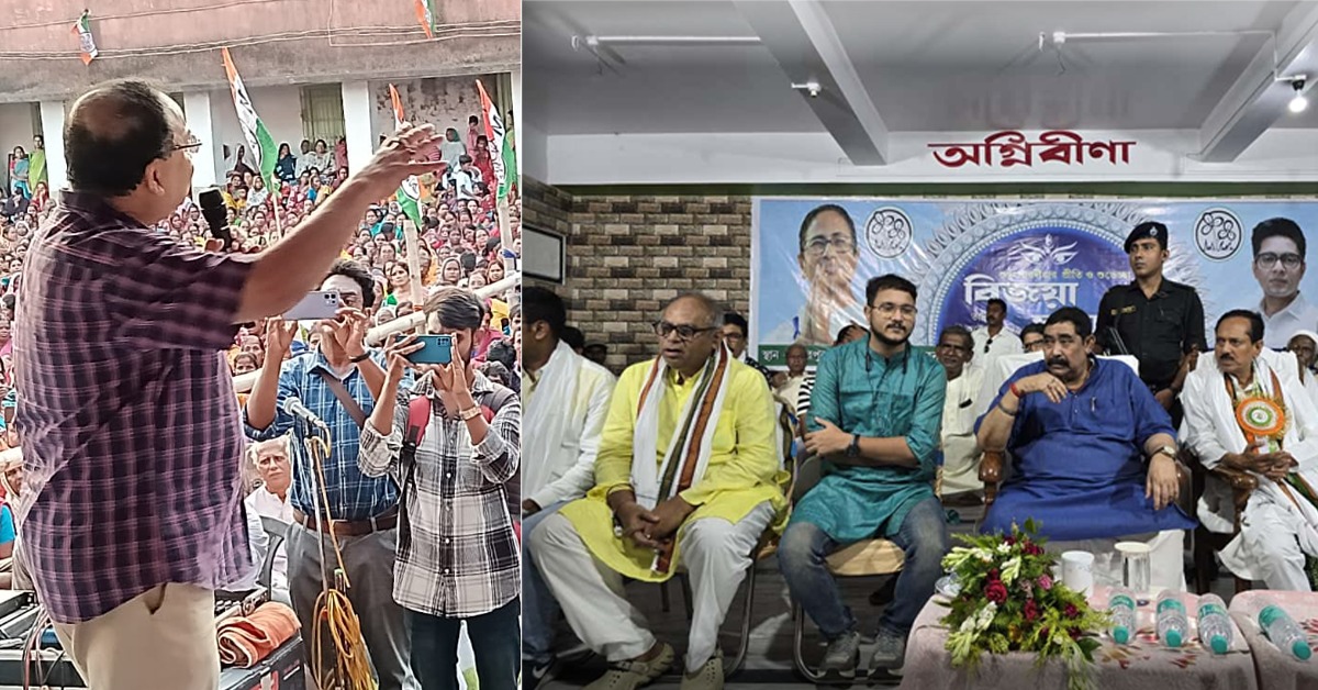 শনিবারও উত্তরের দিনাজপুর থেকে দক্ষিণের সুন্দরবন-বর্ধমান-বীরভূম— সর্বত্র দলের বিজয়া সম্মিলনীতে উপচে-পড়া ভিড় ছিল। এদিন পূর্ব বর্ধমানের কেতুগ্রাম ও কাটোয়াতে বিজয়া সম্মিলনী সভায় বক্তব্য রাখেন তৃণমূলের (TMC) রাজ্য সাধারণ সম্পাদক কুণাল ঘোষ। দু-জায়গাতেই তিনি প্রত্যয়ের সঙ্গে বলেন, এখন অক্টোবর মাস বিজয়া করছি। আগামী বছর মে মাসে বিজেপিকে হারিয়ে হবে বিজয় উৎসব। তাঁর কথায়, আসলে বিজয় সমাবেশের ভিত্তি প্রস্তর স্থাপন হচ্ছে বিজয়া সম্মিলনীতে। সেইসঙ্গে তিনি বলেন, এই জেলায় ১৬টি আসনের সব ক’টিতেই জয়লাভ করবে তৃণমূল কংগ্রেস (TMC)। অনুষ্ঠানে ছিলেন জেলা সভাপতি রবীন্দ্রনাথ চট্টোপাধ্যায়, বিধায়ক শেখ সাহনাওয়াজ হোসেন-সহ দলীয় নেতা- কর্মীরা। দুটি জায়গাতেই মহিলাদের উপস্থিতি ছিল চোখে পড়ার মতো। কোথাও পরিবহণমন্ত্রী স্নেহাশিস চক্রবর্তী আবার কোথাও মন্ত্রী বীরবাহা হাঁসদা, কোথাও তৃণমূলের আইটি সেলের প্রধান দেবাংশু ভট্টাচার্য, মন্ত্রী মানস ভুঁইয়ারা বাংলা জুড়ে চষে ফেলছেন। সঙ্গে স্থানীয় নেতৃত্ব তো আছেনই। সর্বত্রই একটাই শপথ, ২০২৬-এ বাংলা-বিরোধী বিজেপির কোনও স্থান নেই বাংলায়।