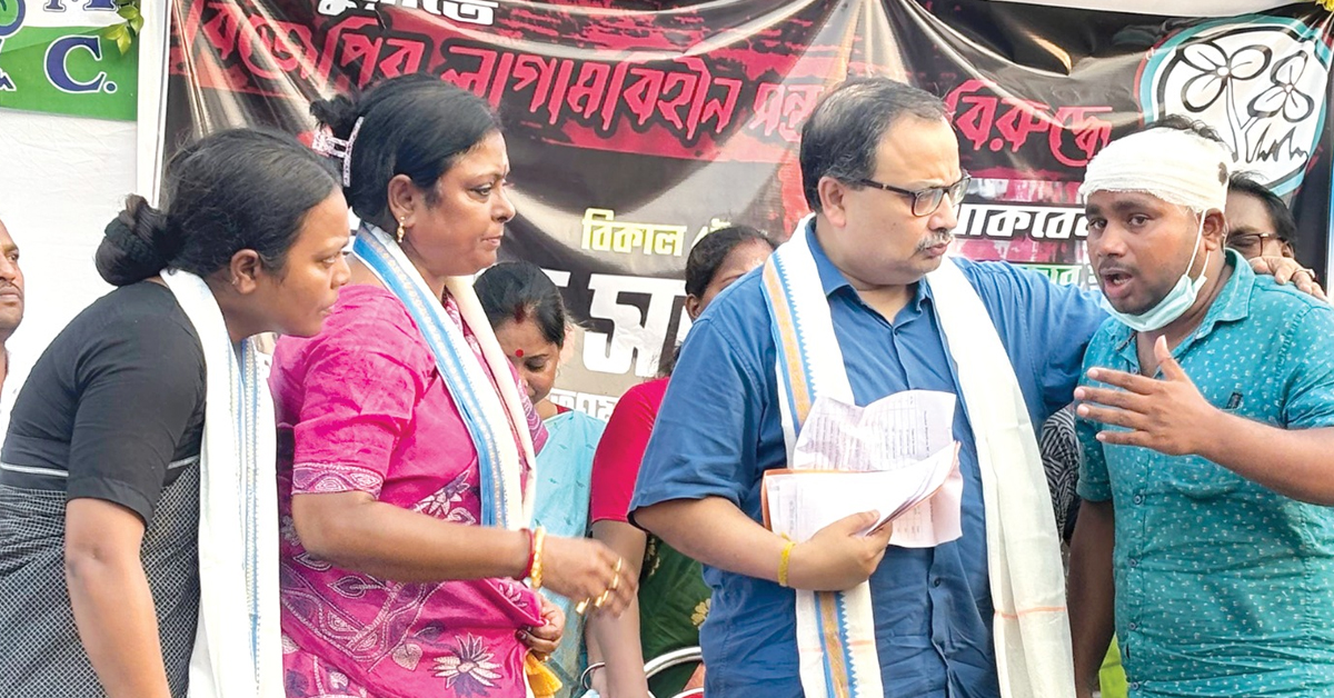 প্রতিবেদন : খেজুরিতে (Khejuri) আক্রান্ত দলীয় কর্মীদের পাশে দাঁড়াল তৃণমূল কংগ্রেস। মুখ্যমন্ত্রী তথা দলনেত্রীর নির্দেশে শুক্রবার খেজুরিতে যায় তৃণমূলের প্রতিনিধি দল। সেখানে আহতদের সঙ্গে কথা বলেন তাঁরা। তাঁদের আশ্বস্ত করে নেত্রীর বার্তা পৌঁছে দিয়ে বলেন, দল ও প্রশাসন সর্বতোভাবে তাঁদের পাশে আছে। ভয় পাবেন না। এরপর সেখানে প্রতিবাদ সভা করে তৃণমূল। দুই মন্ত্রী বীরবাহা হাঁসদা ও শিউলি সাহা, জেলা সভাধিপতি উত্তম বারিক, প্রাক্তন সাংসদ কুণাল ঘোষ-সহ স্থানীয় তৃণমূল নেতৃত্ব বক্তব্য রাখার আগে বিজেপির সন্ত্রাসে আহতদের সঙ্গে মঞ্চে একদফা কথা বলেন। এই সময় এলাকার মা-বোনেদের তরফে আওয়াজ ওঠে, যারা সরকারের সমস্ত সুযোগ-সুবিধা, বিভিন্ন স্কিমের সাহায্য নিচ্ছে তারাই সন্ত্রাস চালাচ্ছে তৃণমূলের উপরে। রাতের অন্ধকারে চলছে বোমাবাজি। চাষ বন্ধ করে দেওয়া হচ্ছে। পুকুরে বিষ ঢেলে দেওয়া হচ্ছে। যারা এই সন্ত্রাস চালাচ্ছে তাদের চিহ্নিত করে অবিলম্বে সরকারি পরিষেবা থেকে তাদের নাম বাদ দিতে হবে। তৃণমূলের প্রতিনিধি দল মঞ্চে জানিয়েছেন, সন্ত্রাসকারীদের ৭২ ঘণ্টার মধ্যে গ্রেফতার করতে হবে। তাদের চিহ্নিত করতে হবে। নাম-ঠিকানা থানায় জমা দিতে বলেন তাঁরা। তৃণমূলের প্রতিনিধি দলের তরফে মুখ্যমন্ত্রীর বার্তা খেজুরির মানুষকে পৌঁছে দেওয়া হয়। এলাকায় শান্তিরক্ষার কথা বলেছেন মুখ্যমন্ত্রী। একটা সময় এখানে দিন-রাত বোমা-গুলির শব্দে মানুষ সন্ত্রস্ত থাকত। সেই দিন আর ফিরতে দেওয়া হবে না। আপনারা কোনও প্ররোচনায় পা দেবেন না।