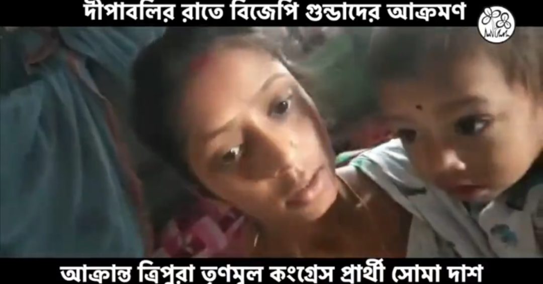সোমবারও আগরতলায় মনোনয়ন প্রত্যাহারের জন্য স্বপ্না মল্লিকের বাড়িতে হামলা করে বিজেপি গুণ্ডারা। ব্যাপক হামলা চালানো হয় স্বপ্নার বাড়িতে। গোটা বাড়ি ভাঙচুর করা হয়। আগরতলা পুর নিগমের ৪২ নম্বর ওয়ার্ডের তৃণমূল কংগ্রেস প্রার্থী সোমা দাসের বাড়িতে কালীপুজোর রাতে বিজেপির গুণ্ডারা হামলা চালায়। ছোট্ট বাচ্চাকে কোলে নিয়ে সোমা জঙ্গলে পালিয়ে যায়। পরে বাড়ি ফিরলে মাঝরাতে ফের হামলা চালানো হয় তাঁর বাড়িতে। এরপর স্বামী সন্তান নিয়ে সারাসারাত জঙ্গলেই কাটে সোমার। এখনও তিনি বাড়ি ছাড়া। পুলিশ সব জেনেও চুপ। এত কিছুর পরেও সোমা বিজেপির কাছে মাথা নোয়াননি। মনোনয়নপত্র প্রত্যাহার করেননি সোমা। আসলে ভয় পেয়েছে বিজেপি। দলের সর্বভারতীয় সাধারণ সম্পাদক অভিষেক বন্দ্যোপাধ্যায়ের নেতৃত্বে ও দলনেত্রী মমতা বন্দ্যোপাধ্যায়ের দেখানো পথে গত কয়েক মাসে ত্রিপুরায় সাংগঠনিক শক্তি অনেকটাই বাড়িয়েছে তৃণমূল কংগ্রেস।