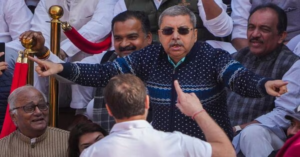 বেনজির ভাবে সংসদের শীতকালীন অধিবেশনে বিরোধীদলের ১৪১ সাংসদ সাসপেন্ড। এর প্রতিবাদে মঙ্গলবার সকাল থেকে সংসদের বাইরে সাসপেন্ড হওয়া সাংসদরা সিঁড়িতে বসে ও পরে গান্ধীমূর্তির সামনে ধর্না দেন। সেখানেই তৃণমল সাংসদ কল্যাণ অঙ্গভঙ্গি করে জগদীপ ধনকড়কে নকল করেন বলে খবর। তাঁকে দেখে হেসে গড়িয়ে পড়েন অন্যান্য বিরোধীদলের সাংসদরা। সেখানে ছিলেন কংগ্রেস সভাপতি মল্লিকার্জুন খার্গের মতো বর্ষীয়ান নেতারাও। পকেট থেকে মোবাইল ফোন বের করে পুরো ঘটনার রেকর্ডিং করেন রাহুল গান্ধী। ভিডিওতে কল্যাণ বন্দ্যোপাধ্যায়কে বলতে শোনা যায়, “আমার মেরুদণ্ড সোজা, আমি খুব লম্বা”
