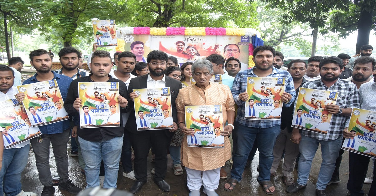 প্রতিবেদন: ২৮ অগাস্ট তৃণমূল ছাত্র পরিষদ বা টিএমসিপির (TMCP) প্রতিষ্ঠাদিবস। এই উপলক্ষ্যে ওই দিন একাধিক কর্মসূচি নিয়েছে তাঁরা। রাজ্য জুড়ে চলছে প্রচার। এই প্রচারের অঙ্গ হিসেবে বৃহস্পতিবার সংগঠনের তরফে আনুষ্ঠানিক ভাবে একটি পোস্টার রিলিজ করা হল। দলনেত্রী মমতা বন্দ্যোপাধ্যায় ও দলের সর্বভারতীয় সাধারণ সম্পাদক অভিষেক বন্দ্যোপাধ্যায়ের ছবি রয়েছে এই পোস্টার। এদিন ময়দানে গান্ধিমূর্তির পাদদেশে এক অনুষ্ঠানে এই পোস্টার প্রকাশ করা হয়।