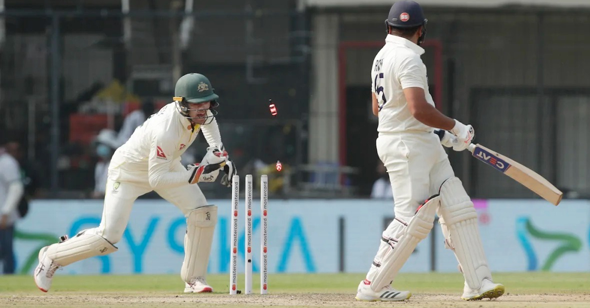 লাল মাটির এই উইকেটে বল ঘুরবে, এটা জানাই ছিল। কিন্তু এরকম টার্নার হবে জানলে রোহিত শর্মা হয়তো টস জিতে আগে ব্যাটিং নিতেন না। রাহুলকে বসিয়ে এই ম্যাচে শুভমনকে আনা হয়েছে। একটা সময় বিনা উইকেটে ২৭ রানও তুলে ফেলেছিলেন দুই ওপেনার। কিন্তু ম্যাথু কুনেমানকে স্টেপ আউট করে মাঠের বাইরে ফেলতে গিয়ে রোহিত (১২) অ্যালেক্স ক্যারির হাতে স্ট্যাম্পড হওয়ার পর থেকে পরপর উইকেট চলে গেল ভারতের। শুভমন (২১) ফের কুনেমানকে উইকেট দিয়ে গেলেন। তারপর পূজারা (১), জাদেজা (৪), শ্রেয়স (০) ও বিরাট (২২) আউট হয়েছেন স্পিনারদের সামনে।