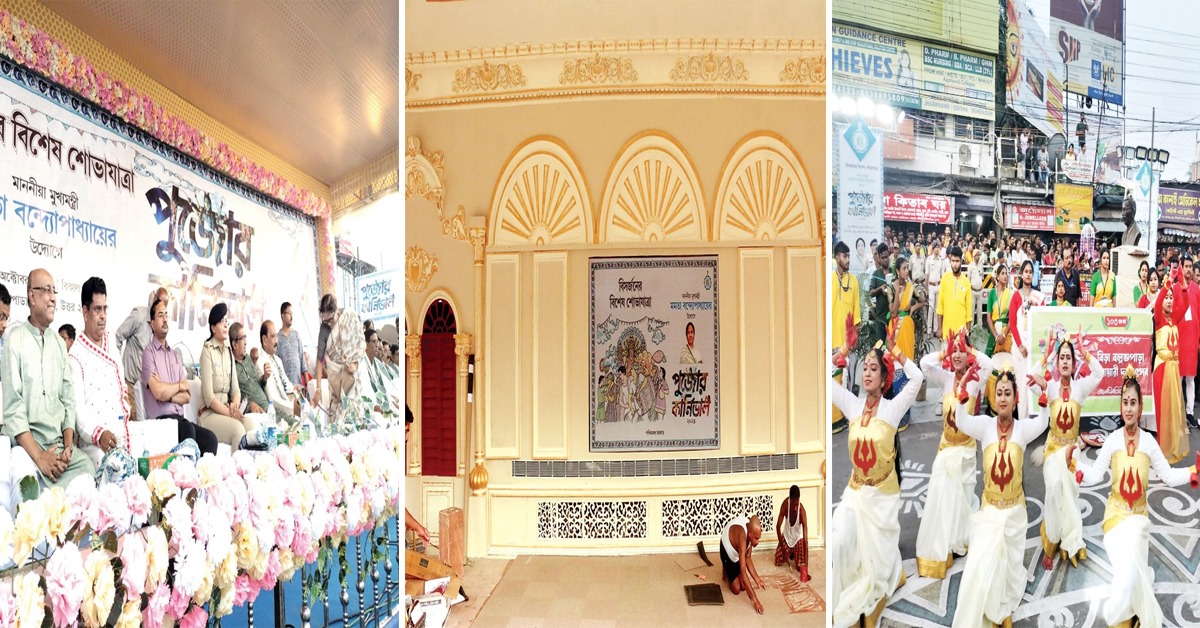 প্রতিবেদন : শেষ হয়েছে শারদোৎসব। কিন্তু উৎসব শেষ হচ্ছে না এখনই। আগামিকাল রাজ্য সরকারের উদ্যোগে কলকাতার রেড রোডে আয়োজিত হতে চলেছে পুজো কার্নিভাল (Puja Carnival 2024)। সেই উৎসবের জন্য যাবতীয় প্রস্তুতি সারা হয়ে গিয়েছে ইতিমধ্যেই। গোটা রেড রোড চত্বর মুড়ে কড়া নিরাপত্তার চাদরে। শহর ও শহরতলির কয়েকশো পুজো কমিটি এই শোভাযাত্রায় অংশগ্রহণ করবে। কার্নিভালের পর এখান থেকেই প্রতিমাগুলি বিসর্জনের উদ্দেশ্যে রওনা দেবে। তবে রেড রোডের এই ইউনেস্কো সম্মানিত কার্নিভালের আগে সোমবার রাজ্যের বিভিন্ন জেলার জেলা সদরে স্থানীয় প্রশাসনের উদ্যোগে অনুষ্ঠিত হল জেলার পুজো কার্নিভাল। পাহাড় থেকে সাগর, সর্বত্রই জমজমাট কার্নিভালের মেজাজ। আজ বিকেল ৪টে থেকেই উত্তর ও দক্ষিণ ২৪ পরগনা, বীরভূম, বাঁকুড়া, উত্তর ও দক্ষিণ দিনাজপুর, শিলিগুড়ি, দার্জিলিং-সহ সমস্ত জেলাতেই জেলা সদরগুলিতে কার্নিভাল শুরু হয়ে গিয়েছে। বিষ্ণুপুরে এবার প্রথমবারের জন্য কার্নিভাল আয়োজিত হয়েছে। প্রায় সব জেলাতেই আগেরবারের চেয়ে এবার পুজোর সংখ্যা বেড়েছে। সেই অনুযায়ী বেড়েছে কার্নিভালে অংশগ্রহণকারী পুজো কমিটিগুলির সংখ্যাও। যেমন, মালদহ জেলায় এবছর কার্নিভালে অংশ নিচ্ছে ২৫টি ক্লাব। গতবার এই সংখ্যাটা ছিল ১৯। মালদহ শহরের সুকান্ত মোড় থেকে জাতীয় সড়ক ধরে রথবাড়ি মোড় পর্যন্ত শোভাযাত্রা সম্পন্ন হল এদিন। আবার উত্তর ২৪ পরগনায় বারাসত, বারাকপুর, বসিরহাট ও বনগাঁয় স্থানীয় প্রশাসনের উদ্যোগে আয়োজিত হল পুজো কার্নিভাল (Puja Carnival 2024)। বনগাঁয় ১০টি প্রতিমা নিয়ে এবং বাকি তিন জায়গায় ১৪টি প্রতিমা নিয়ে পুজো কমিটিগুলি শোভাযাত্রা ও সাংস্কৃতিক অনুষ্ঠান হয়।