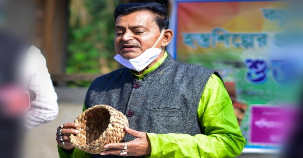 বিশ্বভারতী থেকে ক্র্যাফট ডিজাইন পাশের বিদ্যে কাজে লাগান রাজু। মন্ত্রীর কথায়, ‘‘কচুরিপানা দিয়ে যে সুন্দর শিল্পকর্ম হতে পারে না দেখলে বিশ্বাস হত না।’’ এর জন্য নাদনঘাটকে বাছার কারণ, এলাকাতেই রয়েছে ১০০ একর জায়গা জুড়ে দুটি বিশাল জলাশয় বাঁশদহ ও চাঁদের বিল। সেখানে কচুরিপানার অভাব নেই। বিল থেকে কচুরিপানা সরিয়ে মাছ চাষে সুবিধা হবে, জলাশয় পরিষ্কার থাকবে। আর কচুরিপানা তুলে শুকিয়ে শিল্পকর্ম তৈরি হবে।