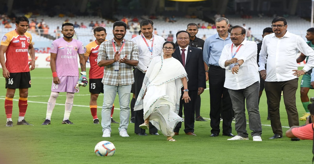 প্রতিবেদন : বিবেকানন্দ যুবভারতী ক্রীড়াঙ্গনে ১৩৪তম ডুরান্ড কাপের কিক-অফ করলেন মুখ্যমন্ত্রী মমতা বন্দ্যোপাধ্যায়। বলে দুরন্ত কিক মেরে বিশ্বের অন্যতম প্রাচীন এই টুর্নামেন্টের উদ্বোধন করলেন মুখ্যমন্ত্রী। সঙ্গে ছিলেন ক্রীড়ামন্ত্রী অরূপ বিশ্বাস, ক্রীড়াপ্রতিমন্ত্রী মনোজ তিওয়ারি, দমকলমন্ত্রী সুজিত বোস-সহ সেনাবাহিনীর ইস্টার্ন কমান্ডের উচ্চপদস্থ কর্তারা।