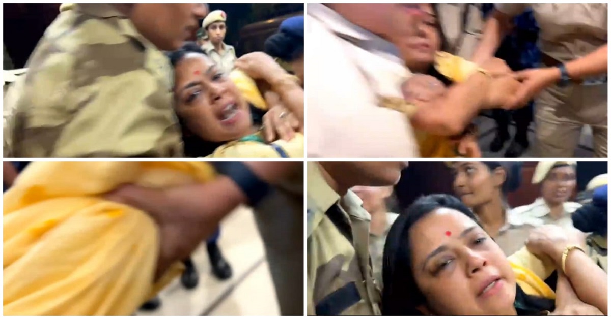 এরপরেই দিল্লি পুলিশের বিরুদ্ধে কৃষি ভবন থেকে তৃণমূলের নেতা নেত্রীদের সরাতে গিয়ে দলের মহিলা নেত্রীদের সঙ্গে দুর্ব্যবহারের অভিযোগ উঠল৷ টানা হ্যাঁচড়ায় শাড়ি ছিঁড়ে গিয়েছে তৃণমূল সাংসদ মহুয়া মৈত্রের। বীরবাহা হাঁসদা সহ তৃণমূলের একাধিক মহিলা নেত্রীকে টেনে হিঁচড়ে বের করে দেওয়ার ছবি স্পষ্ট হয়েছে। টানাহ্যাঁচড়া করেই তৃণমূল নেতানেত্রীদের বের করে নিয়ে যায় এদিন পুলিশ। মহুয়া মৈত্র, দোলা সেন, বীরবাহা হাঁসদার মতো মহিলা সাংসদ, বিধায়কদেরও এই বর্বরতার শিকার হতে হয়েছে এদিন।