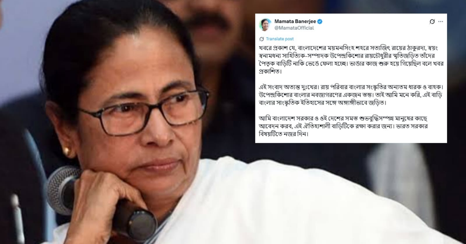প্রতিবেদন : বাংলাদেশের ময়মনসিংহে সত্যজিৎ রায়ের ঠাকুরদা ও খ্যাতনামা সাহিত্যিক-সম্পাদক উপেন্দ্রকিশোর রায়চৌধুরীর পৈতৃক ভিটে ভেঙে ফেলার খবর সামনে আসতেই তীব্র প্রতিক্রিয়া জানালেন মুখ্যমন্ত্রী মমতা বন্দ্যোপাধ্যায়। মঙ্গলবার সন্ধ্যায় এক্স (সাবেক ট্যুইটার)-এ দেওয়া পোস্টে তিনি বিষয়টিকে ‘অত্যন্ত দুঃখজনক’ বলে অভিহিত করেন। মুখ্যমন্ত্রী লেখেন, রায় পরিবার বাংলার সংস্কৃতির অন্যতম ধারক ও বাহক। উপেন্দ্রকিশোর বাংলার নবজাগরণের একজন স্তম্ভ। তাই আমি মনে করি, এই বাড়ি বাংলার সাংস্কৃতিক ইতিহাসের সঙ্গে অঙ্গাঙ্গিভাবে জড়িত। তিনি আরও জানান, এই ঐতিহাসিক বাড়িটি সংরক্ষণের জন্য তিনি বাংলাদেশ সরকার এবং শুভবুদ্ধিসম্পন্ন নাগরিকদের কাছে আবেদন জানাচ্ছেন। সে-দেশের সংবাদমাধ্যম সূত্রে জানা গিয়েছে, স্মৃতিচিহ্ন হিসেবে উপেন্দ্রকিশোরের ওই পৈতৃক বাড়ি সংরক্ষণের দাবিও বহুদিনের, তবে সম্প্রতি সেই বাড়ি ভেঙে ফেলার কাজ শুরু হয়েছে বলেই খবর। মুখ্যমন্ত্রী এ-বিষয়ে ভারত সরকারকেও দৃষ্টি দেওয়ার অনুরোধ করেছেন।