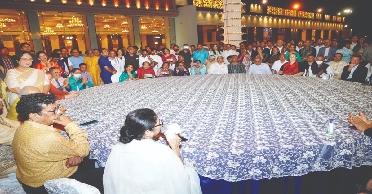 প্রতিবেদন : তিনি রাজ্যের প্রশাসনিক প্রধান, শাসকদলের সুপ্রিমো, তামাম দেশ তাঁকে জানে লড়াকু নেত্রী হিসেবে। তবে সেইসব পরিচয় দূরে সরিয়ে রেখে বুধবার রাজ্য সরকার আয়োজিত বিজয়া সম্মিলনীতে গানে-গল্পে ঘরোয়া মেজাজে ধরা দিলেন মুখ্যমন্ত্রী মমতা বন্দ্যোপাধ্যায়। এদিন, ইকো পার্কের মিষ্টিকাতে বিজয়া সম্মিলনীতে (Mistika- Vijaya Sammilani) চাঁদের হাট বসে। মহানগরের তাবড় বিশিষ্টজনেরা উপস্থিত ছিলেন সেখানে। ছিলেন রাজ্য মন্ত্রিসভার সদস্য থেকে শুরু করে শাসকদলের নেতৃত্ব, রাজ্যের শিল্পপতিরা, সাংস্কৃতিক জগতের বিশিষ্টরা। এই আনন্দ অনুষ্ঠানে একেবারে ঘরোয়া মেজাজে ধরা দিলেন খোদ মুখ্যমন্ত্রী।