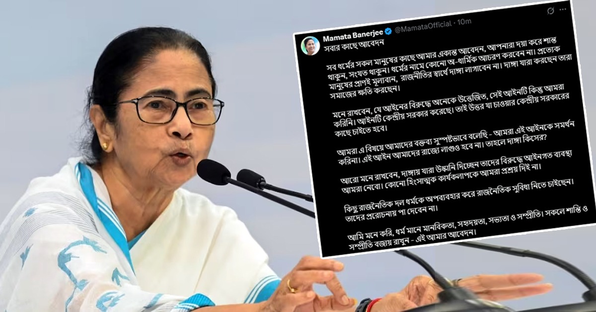 শান্তি বজায় রাখার আবেদন করে মুখ্যমন্ত্রী এক্স হ্যান্ডেলে জানিয়েছেন, “সবার কাছে আবেদন