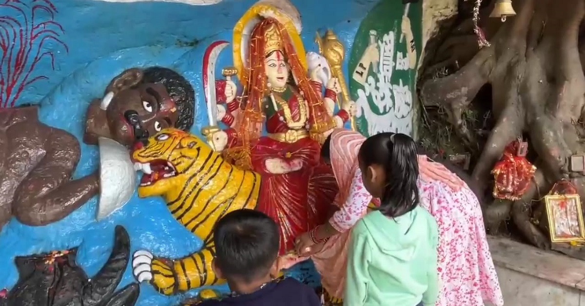 কায়েশ আনসারি, দার্জিলিং: শান্ত, নিরিবিলি পাইন গাছঘেরা পাহাড়ের গ্রাম। দার্জিলিং থেকে আরও সাড়ে সাত হাজার ফিট ওপরে। রিম্বিক। কাঁসর, ঘণ্টা উলুধ্বনিতে রাজ্যের উচ্চতম জায়গা মেতে উঠেছে পার্বতীর আবাহনে। মুখ্যমন্ত্রী মমতা বন্দ্যোপাধ্যায়ের পুজোর অনুদান পৌঁছে গিয়েছে পাহাড়ের এই ছোট্ট গ্রামটিতেও। প্রতিষ্ঠিত মন্দির, তার দেওয়ালে সিংহবাহিনীর মাটির মূর্তি তৈরি করা হয়েছে। পুজো উদ্যোক্তারা জানিয়েছেন, এত উঁচুতে প্রতিমা নিয়ে আসা যায় না, তাই মন্দিরের দেওয়ালেই রং করে তাতে মাটির তৈরি প্রতিমার আকার দেওয়া হয়। এখানে মা দশভুজা নন, চার হাতে সজ্জিত অস্ত্র। পর্বতের মেয়ে পার্বতী রূপ।