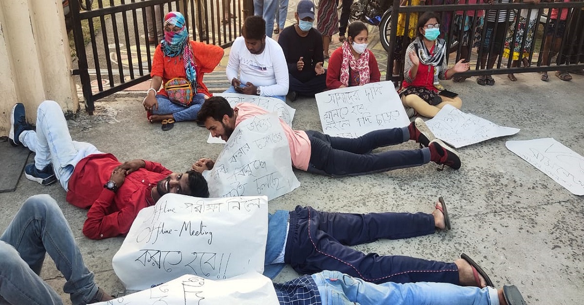 যদিও অনশনরত পড়ুয়াদের দাবি, তাঁরা কাউকেই আটকে রাখেননি। সোমবার বাংলাদেশ ভবনে বৈঠক হওয়ার কথা ছিল। পড়ুয়ারা জানতে পেরে সেখানে অবস্থান করেন। রেজিস্ট্রার আশিস আগরওয়াল জানান, বৈঠকে ঢুকতে প্রথমে বাধা দিলেও পরে ঢুকতে দেওয়া হয়। কিন্তু অনেকেই আসতে পারেননি বলে বৈঠক বাতিল হয়। এরপর তাঁদের বেরোতে দেওয়া হয়নি। পড়ুয়ারা রাস্তায় শুয়ে পড়েন। ওসি দেবাশিস পণ্ডিত গিয়ে আধিকারিকদের বের করে আনতে চান। কিন্তু ওঁরা আসতে চাননি। ছাত্র সোমনাথ সৌ বলেন, কর্মসচিব চাইলে পুলিশের মতো আমাদের টপকে যেতে পারতেন। বিশ্বভারতীর টিএমসিপি ইউনিটের সভাপতি মীনাক্ষী ভট্টাচার্য বলেন, ওঁদের আটকানো হয়নি। আমাদের ছেলেরা রাস্তায় শুয়ে আছে। চাইলে টপকে যেতে পারেন। কিন্তু তিন দফা দাবি না মানলে, অনশনরত পড়ুয়ারা আত্মহত্যা করলে, তার দায় নিতে হবে বিশ্বভারতী তথা উপাচার্যকে। পরীক্ষা না দিলে ফেল করিয়ে দেওয়ার হুমকি-নোটিশ তুলে নেওয়া হয়েছে।