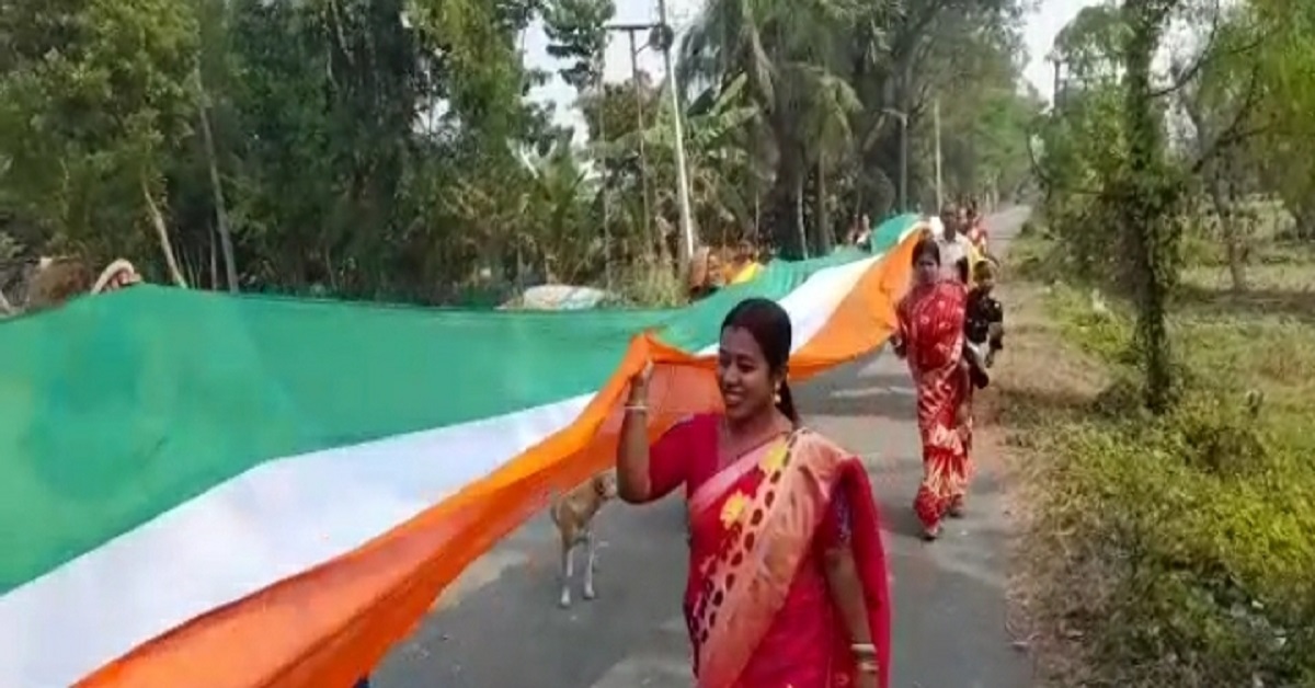 এদিন দেখা গেল গ্রামের মহিলাদের অন্য রূপ। দেশভক্তিতেও পিছিয়ে নেই তাঁরাও। অনেকেই খুব সকাল-সকাল পুজো দিয়ে তৈরি হয়ে যান। আবার অনেকেই পুজো না দিয়ে দেশমাতার প্রতি শ্রদ্ধা জানানোর জন্য পতাকা কাঁধে তুলে নিতে চলে এসেছেন। গ্রামে মহিলাদের উদ্যোগে এই সাধারণততন্ত্র দিবস পালিত হয়। যেখানে অংশগ্রহণ করেছিলেন গ্রামের ১৫০ জনের বেশি মহিলা। এই পতাকা দেখতে রাস্তার দুই পাশে ভিড় জমিয়েছিলেন গ্রামের সাধারণ মানুষ। এত বড় পতাকা দেখে সাধারণ মানুষও আনন্দে মেতে ওঠেন দিনটি পালনে।