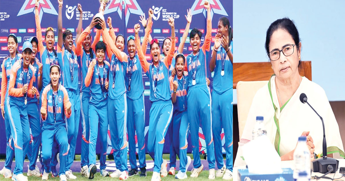 প্রতিবেদন : আবার বিশ্ব চ্যাম্পিয়ন (Women’s U-19 T20 World Cup) ভারত। এবার ভারতের মেয়েরা। অনূর্ধ্ব ১৯ টি-২০ বিশ্বকাপ (Women’s U-19 T20 World Cup) চ্যাম্পিয়ন হল ভারত। রবিবার ফাইনালে দক্ষিণ আফ্রিকাকে ৯ উইকেটে হারিয়ে কাপ জিতল নিকি প্রসাদের নেতৃত্বাধীন ভারতীয় দল। উচ্ছ্বসিত বাংলার মুখ্যমন্ত্রী মমতা বন্দ্যোপাধ্যায় বললেন, তোমরা দেশকে গর্বিত করেছ। দেশবাসীর শুভেচ্ছা রইল তোমাদের জন্য। এদিন বোলারদের দাপটে ২০ ওভারে মাত্র ৮২ রানেই অলআউট হয় দক্ষিণ আফ্রিকা। পাল্টা ব্যাট করতে নেমে, ১১.২ ওভারে ১ উইকেটে ৮৪ রান তুলে ৫২ বল হাতে রেখেই ম্যাচ জিতে নেয় ভারত। ভারতীয় বোলারদের মধ্যে ১৫ রানে ৩ উইকেট নেন তৃষা। ৬ রানে ২ উইকেট পারুনিকা সিসোদিয়ার। ৯ রানে ২ উইকেট পান আয়ুষী শুক্লা। ২৩ রানে ২ উইকেট নেন বৈষ্ণবী শর্মা। রান তাড়া করতে নেমে, জি কমলিনী মাত্র ৮ রানে আউট হলেও, তৃষা (৪৪) এবং সানিকা চালকে (অপরাজিত ২৬) দলকে জয় এনে দেন। ৩০৯ রান ও ৭ উইকেট নিয়ে প্লেয়ার অফ দ্য টুর্নামেন্ট হয়েছেন তৃষা।