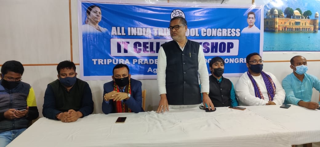 ত্রিপুরা তৃণমূল কংগ্রেসের আইটি সেলের (Trinamool IT Cell) উদ্যোগে একদিনের কর্মশালা অনুষ্ঠিত হল। শুক্রবার আগরতলায় দলের ২০০ জন যুব প্রতিনিধি আইটি সেলের এই কর্মশালায় অংশগ্রহণ করেন। সোশ্যাল মিডিয়ার মাধ্যমে তৃণমূল কংগ্রেসের ভবিষ্যৎ কর্মসূচি এবং সংগঠনকে তৃণমূল স্তরে পৌঁছে দেওয়ার উদ্যোগ নিয়ে আলোচনা হয়। সোশ্যাল মিডিয়ার মাধ্যমে দলের রাজনৈতিক ও সাংগঠনিক কর্মসূচি রাজ্যের প্রতিটি প্রান্তে পৌঁছে দেওয়ার বিষয়ে বিস্তারিত আলোচনা হয়।